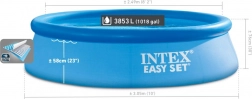 Średnica 305 cm i wysokość 76 cm zapewniają wystarczająco dużo miejsca dla dzieci i dorosłych. Pojemność 3 853 l gwarantuje przyjemne orzeźwienie w upalne dni.