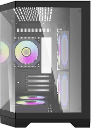 Obudowa oferuje szerokie możliwości chłodzenia z opcją montażu aż siedmiu wentylatorów lub instalacji chłodzenia wodnego 240 mm. W zestawie otrzymujesz dodatkowo pięć wydajnych wentylatorów ARGB, które nie tylko zapewniają skuteczne chłodzenie, ale też atrakcyjne efekty wizualne.