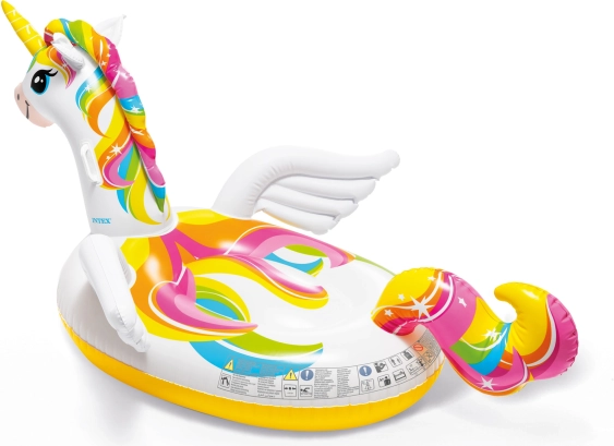 Przeżyj lato w pełni z tym wygodnym i zabawnym nadmuchiwanym „ostrowem” w kształcie jednorożca od INTEX. Dzięki 2 solidnym uchwytom, dwóm komorom powietrznym i wytrzymałemu winylowi jest idealny do relaksu i zabawy w basenie lub na jeziorze. Ucieszy duży udźwig 200 kg i praktyczność – w zestawie znajduje się łatka naprawcza.