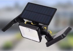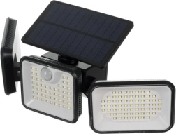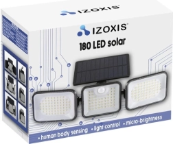 Wydajna solarna lampa IZOXIS z 180 diodami LED, czujnikiem ruchu PIR i czujnikiem zmierzchu niezawodnie oświetli ogród, wejście, garaż lub taras. Oferuje strumień 550 lm, 3 regulowane panele dla szerokiego pokrycia aż 300°, wodoodporność IP65 oraz długą pracę 8–10 h po pełnym naładowaniu – bez rachunków za prąd.