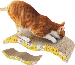 To kartonowe legowisko-drapak z falowanym profilem doskonale zaspokaja naturalne potrzeby kotów – zapewnia trwałą powierzchnię do drapania oraz wygodne legowisko do leniuchowania. Naturalny karton świetnie zachęca do drapania, redukuje stres i utrzymuje pazury w dobrej kondycji, a zabawny żółty nadruk cieszy oko opiekuna.