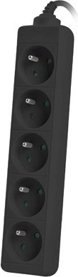 Przedłużacz 3 m, czarny, 5 gniazd, miedziany kabel