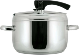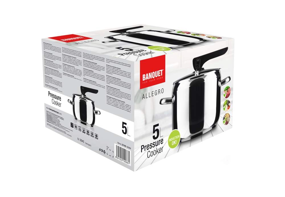 Szybkowar ze stali nierdzewnej o pojemności 5 l z dźwigniową blokadą, średnica 20,8 cm, wysokość 15 cm, stal nierdzewna 18/0, grubość ścianki 0,6 mm, 2 zawory, grube dno typu sandwich. Pokrywa zawiera dwa zawory: główny zawór roboczy oraz pomocniczy/bezpieczeństwa. Szybkowar przeznaczony jest do szybkiego przygotowywania potraw i można go używać na wszystkich typach płyt grzewczych, w tym indukcyjnych. Pokrywa szybkowaru zawiera główny zawór roboczy oraz zawór pomocniczy na wypadek zatkania zaworu roboczego, dzięki czemu garnek jest wyjątkowo bezpieczny! Szybkowar wykonany jest z trwałego materiału, ma grube dno i można go używać na wszystkich typach płyt grzewczych.