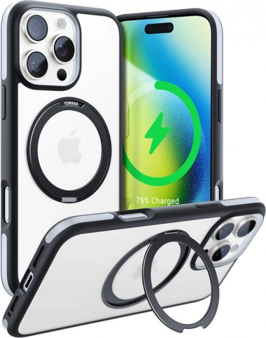 Wbudowany magnetyczny pierścień z obsługą MagSafe zapewnia silne mocowanie do ładowarek, uchwytów samochodowych i innych akcesoriów. Pierścień służy także jako obrotowa podstawka (360°) do wygodnego oglądania wideo, wideorozmów i pracy w podróży. Antypoślizgowe wykończenie i pewny chwyt zmniejszają ryzyko przypadkowego upuszczenia.