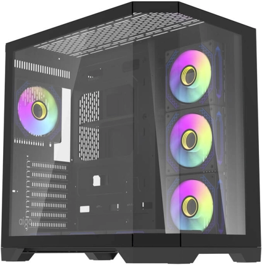Darkflash FT418 Pro oferuje nowoczesny wygląd z panoramicznym wglądem do wnętrza zestawu dzięki trzem panelom z hartowanego szkła. Wytrzymała konstrukcja z blachy SPCC 0,5 mm gwarantuje stabilność, a przemyślany układ wnętrza zapewnia dużo miejsca na wydajne komponenty – w tym GPU o długości do 400 mm i zasilacz do 200 mm.