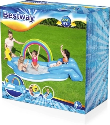 Ten wodny plac zabaw to idealny wybór dla dzieci na letnie dni. Dzięki przyjaznemu połączeniu tęczowej bramy i słoneczka Twoje dzieci spędzą długie godziny na zabawie w orzeźwiającej wodzie. Wielofunkcyjność baseniku nie tylko zapewnia chłodne schronienie przed letnim upałem, ale także dostarcza śmiechu i radości dzięki różnorodnym funkcjom.
