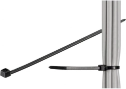 Te czarne nylonowe opaski o długości 200 mm i szerokości 2,5 mm zapewniają niezawodne i estetyczne rozwiązanie do organizacji okablowania oraz szybkiego mocowania przedmiotów. Dzięki samoblokującej zapadce trzymają pewnie na miejscu i nie ślizgają się. Materiał PA66 gwarantuje wysoką wytrzymałość, stabilność oraz odporność na temperaturę i starzenie.