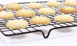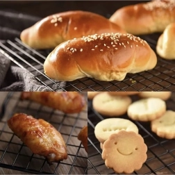 Podwyższone nóżki i gęsta siatka sprawiają, że wypieki chłodzą się równomiernie ze wszystkich stron, bez kondensacji i rozmakania.