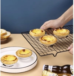 Dzięki gęstej siatce idealnie nadaje się także do polewania polewami, czekoladą i glazurami – nadmiar może swobodnie spływać, a desery pozostają stabilne. Ruszt jednocześnie chroni blat roboczy przed gorącem i ułatwia czystą, precyzyjną pracę podczas dekorowania.
