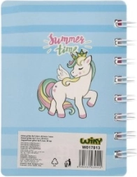 Ten kieszonkowy notes z jednorożcem łączy praktyczne wykonanie z zabawnym designem. Spiralna oprawa pozwala na wygodne przekładanie kartek i pisanie po obu stronach, a liniowane strony utrzymują notatki w porządku. Ozdobna okładka z przezroczystym okienkiem i brokatem doda każdemu dniu odrobiny magii.