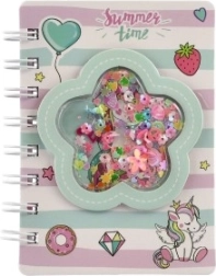 Okładka z przezroczystym okienkiem pełnym konfetti i gwiazdek przyciąga wzrok od pierwszego spojrzenia i nadaje notesowi wyjątkowy wygląd, który pokochają zarówno dzieci, jak i dorośli.