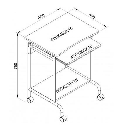 - Dolna pojemna półka (50 × 32 cm) na obudowę PC, drukarkę lub inne urządzenia.