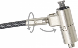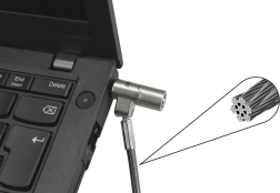 Ultracienki kabel zabezpieczający do laptopów z nano gniazdem 2,5 × 6 mm oferuje niezawodną ochronę przed kradzieżą, wytrzymałą stalową konstrukcję oraz łatwy montaż typu push-to-lock. Dzięki obrotowej i odchylanej głowicy dopasowuje się do smukłych laptopów i zapewnia wygodne użytkowanie w każdym środowisku pracy.