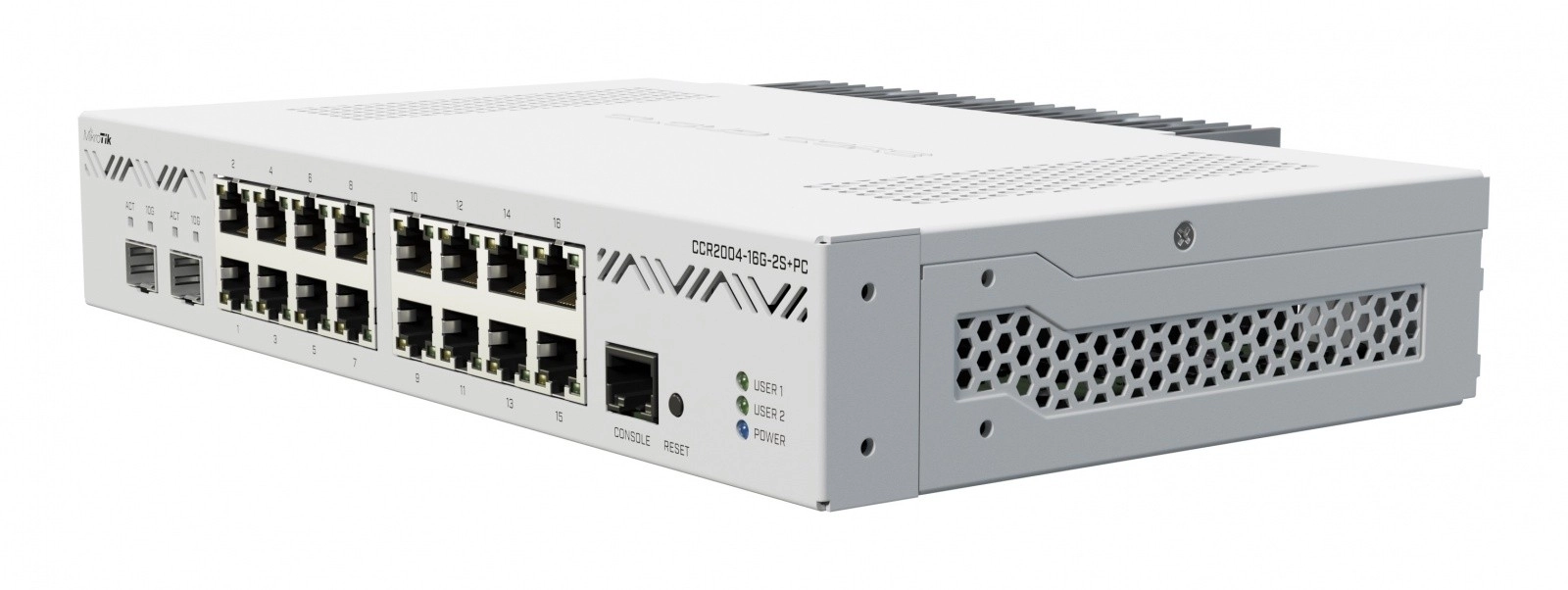 MikroTik CCR2004-16G-2S+PC to profesjonalny Cloud Core Router zaprojektowany do stabilnego i szybkiego routingu w sieciach firmowych, centrach danych oraz u dostawców usług. Posiada 16× 1GbE i 2× 10 Gb/s SFP+ dla elastycznych uplinków, a nowoczesny 64-bitowy procesor ARM i RouterOS zapewniają wysoką wydajność dla zaawansowanego routingu, firewalli, VPN i QoS.