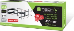 Ścienny uchwyt Techly został zaprojektowany dla użytkowników poszukujących bezpiecznego i elastycznego rozwiązania do montażu telewizora na ścianie. Wspiera telewizory o przekątnej od 43" do 80" i maksymalnej wadze do 50 kg. Dzięki wydłużonemu ramieniu o zasięgu do 1015 mm można wygodnie dopasować pozycję telewizora do własnych potrzeb.