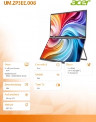 Zwiększ swoją produktywność gdziekolwiek jesteś dzięki eleganckiemu, podwójnemu monitorowi 16'' marki ACER. Dwa ekrany obok siebie, szeroka łączność 2× USB‑C i HDMI, stabilny składany stojak oraz smukła, lekka konstrukcja sprawiają, że to idealne rozwiązanie do pracy w podróży, multitaskingu i prezentacji.