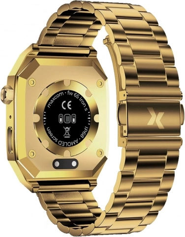 Stylowy męski inteligentny zegarek Maxcom FW65 Iron S w eleganckim, złotym wykończeniu łączy luksusowy wygląd z codzienną funkcjonalnością. Oferuje metalową kopertę, wysokiej jakości wyświetlacz oraz niezawodne funkcje fitness i zdrowotne, dzięki czemu pasuje zarówno do biznesowego środowiska, jak i do luźniejszego stroju.