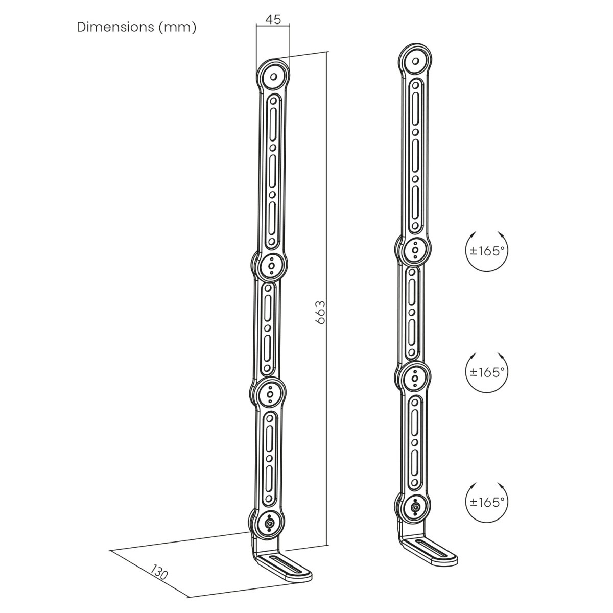 Regulowane ramiona i wielopunktowe przeguby pozwalają umieścić soundbar dokładnie tam, gdzie brzmi najlepiej – niezależnie od wymiarów telewizora.