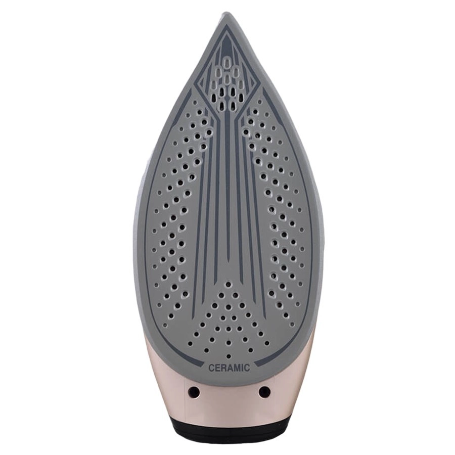 Wytrzymała ceramiczna podeszwa równomiernie rozprowadza ciepło i gładko sunie po tkaninie bez zacinania, co przyspiesza i uprzyjemnia prasowanie.