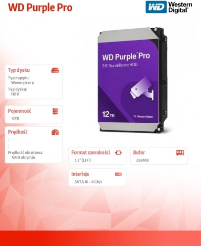 Dysk twardy Western Digital Purple Pro 12TB 3,5" 256MB SATAIII