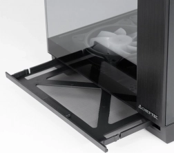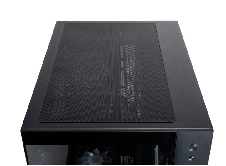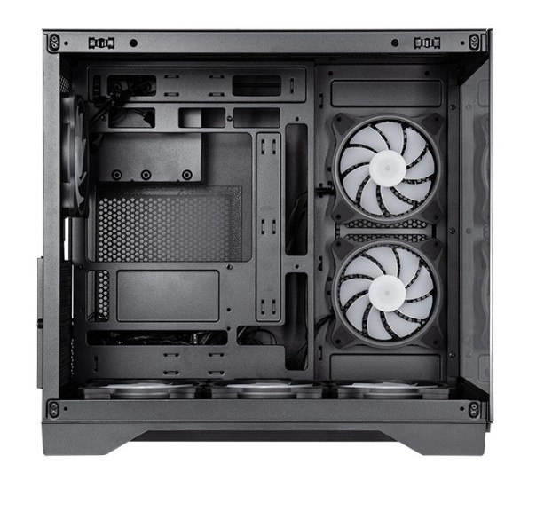Przedni i boczne panele z hartowanego szkła podkreślają komponenty oraz efekty ARGB, a dwukomorowy układ utrzymuje wnętrze w czystości i porządku.