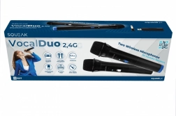 Zestaw VocalDuo zapewnia swobodę ruchu i czysty dźwięk do domowego i scenicznego karaoke. Technologia bezprzewodowa 2,4 GHz gwarantuje stabilne połączenie bez zakłóceń, dzięki czemu możesz skupić się wyłącznie na występie. Dwa mikrofony ręczne z przełącznikiem ON/MUTE/OFF umożliwiają szybkie wyciszenie oraz pewną kontrolę podczas występów.