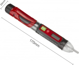 Bezdotykowy detektor napięcia do bezpiecznego i efektywnego pomiaru. Wykrywa napięcie w zakresie 12–1000 V, wyposażony w podświetlany wyświetlacz i wbudowaną latarkę, co gwarantuje łatwe użycie także w ciemnych miejscach.