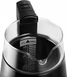 Czajnik jest łatwy w obsłudze i utrzymaniu dzięki wyjmowanej pokrywie z wbudowanym filtrem antywapiennym oraz dużemu otworowi do nalewania wody. Gładkie dno z ukrytą grzałką ogranicza odkładanie się kamienia, a duży wskaźnik poziomu wody ułatwia kontrolę jej ilości wewnątrz czajnika. W pełni obrotowa podstawa oferuje miejsce na schowanie nadmiaru przewodu.