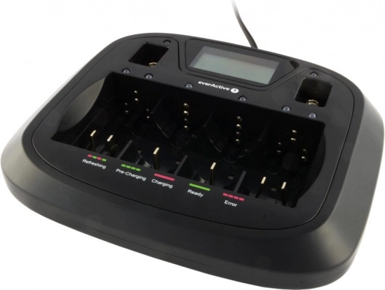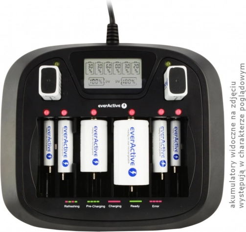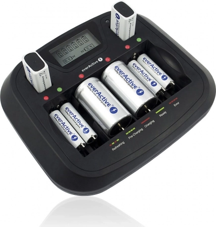 Szukasz ładowarki, która poradzi sobie z większością popularnych i większych ogniw oraz umożliwi ładowanie nieparzystej liczby baterii? Uniwersalna ładowarka procesorowa EVERACTIVE oferuje 8 w pełni niezależnych kanałów z inteligentnym sterowaniem. Dzięki funkcjom odświeżania (refresh) i rozładowania potrafi poprawić kondycję Twoich akumulatorów Ni‑MH i wydłużyć ich żywotność.