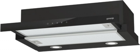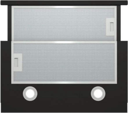 Ten teleskopowy okap o szerokości 60 cm dyskretnie chowa się pod górną szafką i podczas gotowania oferuje silny wyciąg oraz wygodne oświetlenie LED. Czarna wersja świetnie pasuje do nowoczesnej kuchni, a sterowanie dotykowe ułatwia wybór prędkości i światła.