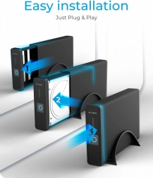 Precyzyjnie wykonany aluminiowy korpus zapewnia efektywne chłodzenie i długą żywotność. Dzięki Plug & Play i HotSwap wymiana dysków jest błyskawiczna, a dołączona podstawka oszczędza miejsce na biurku przy pionowym ustawieniu.