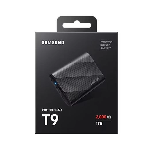 Uniwersalna kompatybilność: Dysk SSD T9 jest kompatybilny z Windows, macOS, urządzeniami z Androidem, konsolami do gier i innymi. W zestawie przewody USB-C do USB-C oraz USB-C do USB-A dla łatwego podłączenia.