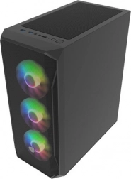 Górny panel I/O oferuje wszystko, co najważniejsze: 2× USB 3.0, 1× USB 2.0, HD Audio 3,5 mm dla słuchawek i mikrofonu, przyciski Power/Reset oraz diody sygnalizacyjne. Hartowane szkło na lewym boku podkreśla Twoje komponenty i efekty RGB, a gęste filtry przeciwkurzowe utrzymują wnętrze w czystości na dłużej.