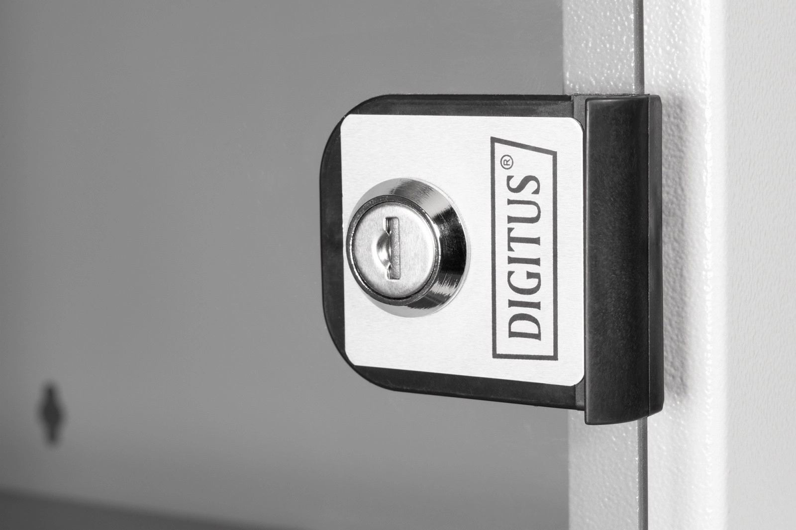 Wisząca szafa 19" DIGITUS SOHO PRO o wysokości 9U została zaprojektowana do bezpiecznego i przejrzystego rozmieszczenia aktywnych i pasywnych elementów sieci w mniejszych instalacjach, biurach domowych i środowisku SOHO. Wytrzymały stalowy korpus z blachy o grubości do 1,5 mm oraz szklane drzwi frontowe z zamkiem jednopunktowym chronią urządzenia, jednocześnie umożliwiając szybką kontrolę wzrokową.