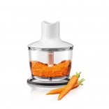 Wśród akcesoriów, które możesz wykorzystać, znajduje się pojemnik do siekania 500 ml, który poradzi sobie z mięsem, serem lub warzywami w krótkim czasie. Dodatkowo trzepaczka do ubijania, mieszania i łączenia składników dla puszystych deserów.