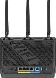 Router oferuje elastyczną konfigurację dzięki jednemu portowi 10G WAN/LAN oraz czterem portom 2,5G LAN. Funkcja AiMesh ułatwia rozszerzanie zasięgu przy użyciu dodatkowych urządzeń ASUS, zapewniając bezproblemową i stabilną sieć w całym domu.