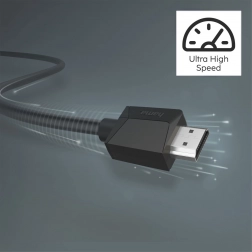 Ciesz się ostrym i płynnym obrazem w rozdzielczości 4K 4096 × 2160 z obsługą HDR, która optymalizuje kontrast, jasność i głębię kolorów. Kabel zaprojektowano do niezawodnej transmisji bez strat dzięki wysokiej jakości materiałom i wielowarstwowemu ekranowaniu.