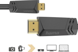 Ten wysokiej jakości kabel HDMI – micro HDMI jest idealny do podłączenia kamer, aparatów, tabletów i innych urządzeń do telewizora, monitora lub projektora. Oferuje wierne odwzorowanie kolorów, wyższy kontrast i ostrość dzięki HDR, więc filmy i seriale obejrzysz w perfekcyjnej rozdzielczości 4K. Zwiększona szerokość pasma umożliwia także transmisję 3D oraz przestrzeń barw 30/36/48 bitów.