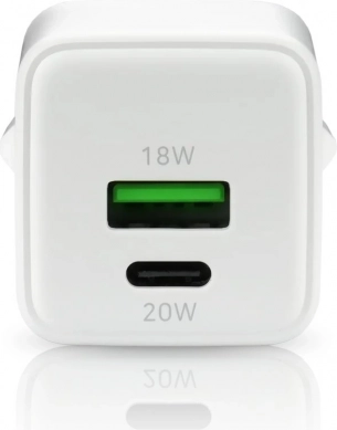 Ładowarka sieciowa GaN 1x USB, 1x USB‑C 20W QC3.0 biała
