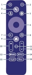 Ergonomiczny pilot z przyciskami do usług streamingowych zapewnia wygodne sterowanie urządzeniem.