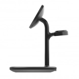 Korzystaj z bezprzewodowego ładowania swojej elektroniki dzięki ładowarce MagScape 3w1. Dzięki technologii MagSafe możesz wygodnie używać urządzeń z maksymalną mocą 15 W w dowolnej pozycji. Ładowarka jest kompatybilna z etui Apple MagSafe i może ładować wiele urządzeń jednocześnie.