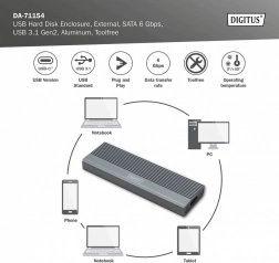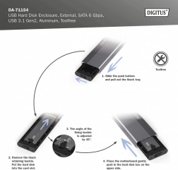 Instalacja trwa moment — bez śrubek i narzędzi. Obsługiwane są popularne rozmiary M.2 (2230/2242/2260/2280), więc bez trudu wykorzystasz większość dysków SATA M.2 SSD o pojemności do 8 TB. Dzięki wstecznej kompatybilności z USB 3.1/3.0/2.0/1.1 podłączysz obudowę praktycznie do każdego urządzenia.