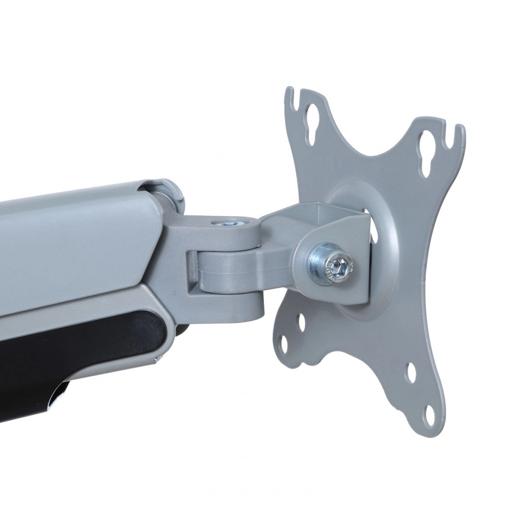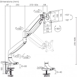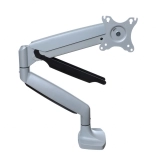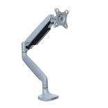 Gazowy biurkowy uchwyt do monitora został zaprojektowany z myślą o większych i cięższych ekranach, w tym modelach zakrzywionych. Pozwala łatwo regulować kąt i pozycję wyświetlacza bez użycia narzędzi. Dostępny jest system prowadzenia kabli, a konstrukcja zapobiega niepożądanemu przesuwaniu się monitora.