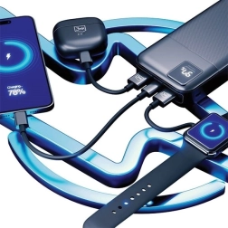 Technologia Multi‑Charge pozwala ładować 3 urządzenia naraz, a jeśli jednocześnie podłączysz powerbank do zasilania, dołączysz także czwarte urządzenie. Funkcja Pass‑Through zapewnia bezpieczne jednoczesne ładowanie powerbanku i podłączonych urządzeń. O aktualnym poziomie naładowania informuje zintegrowany wyświetlacz LED, więc zawsze masz energię pod kontrolą.