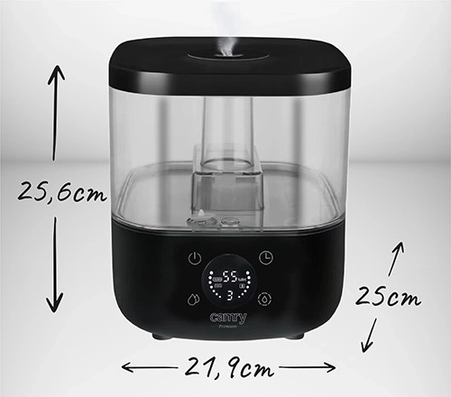 Stylowy ultradźwiękowy nawilżacz powietrza CAMRY CR 7973 z wyświetlaczem LED i panelem dotykowym zapewni idealną wilgotność w domu. Oferuje napełnianie od góry dla łatwej obsługi, cichy tryb nocny, automatyczne wyłączanie przy braku wody oraz precyzyjne monitorowanie aktualnej wilgotności na wyświetlaczu. Wydajność 100–260 ml/h utrzymuje powietrze przyjemnie świeże przez cały rok.