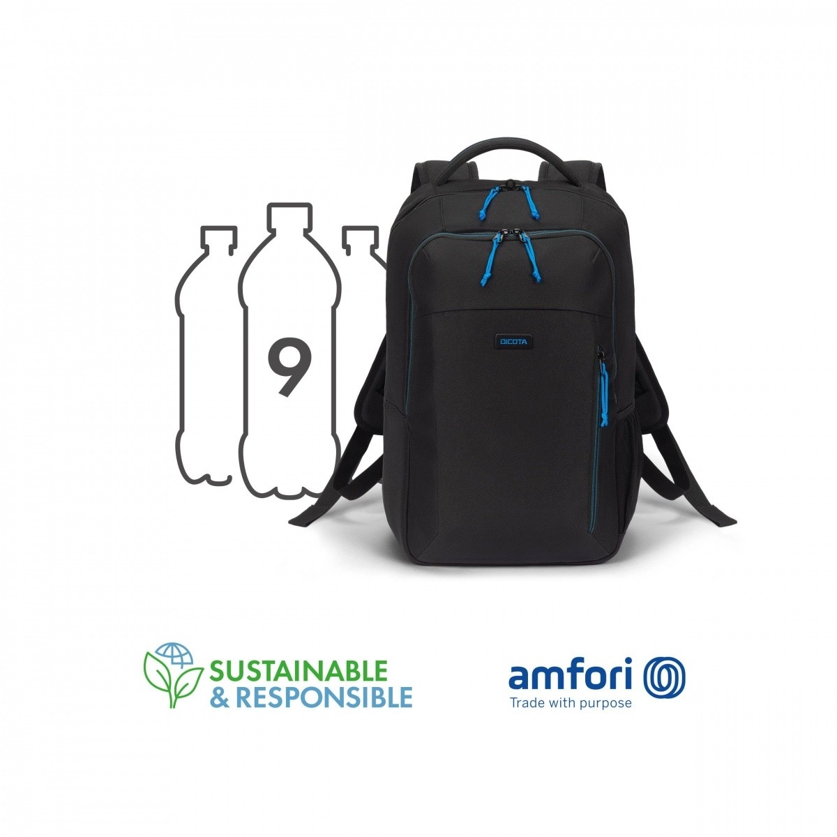 Praktyczny i stylowy plecak na laptopy 13–16 cali, oferujący pojemną komorę główną z wyściełaną kieszenią, przemyślaną organizację oraz wygodne noszenie dzięki wyściełanym plecom i regulowanym szelkom. Wykonany z recyklingowanego PET (9 butelek), z wytrzymałymi zamkami i subtelnymi niebieskimi akcentami – świetny wybór do pracy i na co dzień.