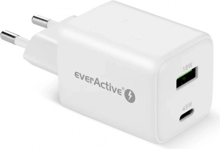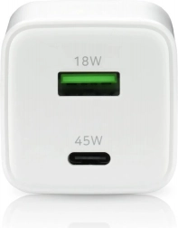 Dwa wyjścia – USB‑C PD/PPS 45 W oraz USB‑A QC4+ – umożliwiają elastyczne ładowanie różnych sprzętów. Szeroki zakres wejściowy 100–240 V / 50–60 Hz gwarantuje użycie na całym świecie. Wysokosprawna konstrukcja spełnia wymagające standardy energetyczne i minimalizuje nagrzewanie oraz pobór w trybie standby.