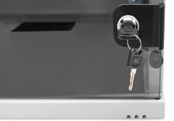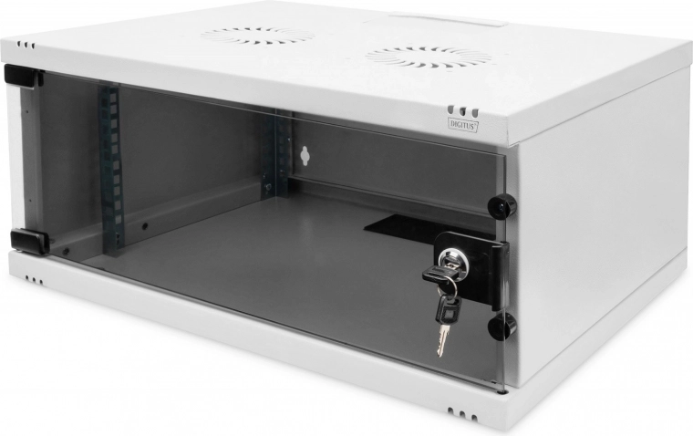 Wisząca szafa sieciowa DIGITUS została zaprojektowana do przejrzystej i bezpiecznej instalacji urządzeń 19" w sieciach domowych i biurowych. Stabilny korpus z blachy stalowej (1,1–1,5 mm) z lakierem proszkowym zapewnia długą żywotność, a przeszklone drzwi frontowe z jednopunktowym zamkiem chronią sprzęt przed niepożądanym dostępem.