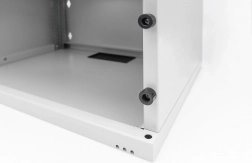 Nacisk na szybką instalację i optymalne chłodzenie wspierają otwory wentylacyjne do chłodzenia pasywnego i aktywnego oraz przepusty ze szczotkowaną listwą dla schludnego prowadzenia kabli. Przednie szyny 19" są galwanizowane i mają regulowaną głębokość, dzięki czemu łatwo dopasujesz położenie urządzeń.
