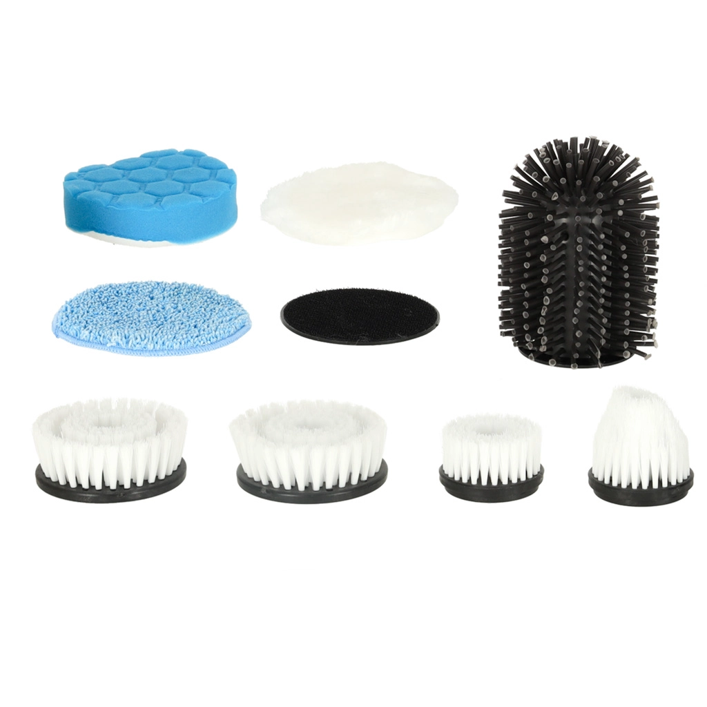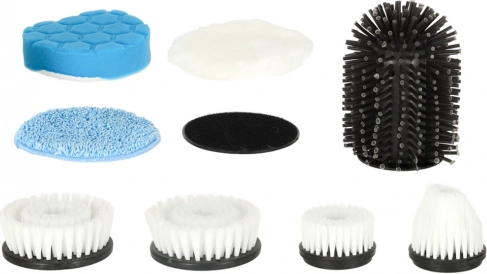 Zestaw zawiera różne szczotki i pady do szorowania, mycia i polerowania. Poradzisz sobie z płytkami, fugami, armaturą, szkłem i płytą grzewczą.